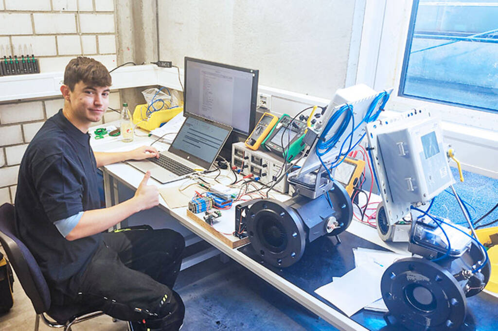 Er ist bereits in seinem zweiten Jahr und ist nun in der Fertigung tätig. Hier übernimmt er verantwortungsvolle Aufgaben wie die Parametrierung elektronischer Gaszähler, Aufbau von Mengenumwertern, Verkabelung und Programmierung, Unterstützung des Reparatur-Teams bei Befundung und Reparaturen und die Montage und Verdrahtung von Kommunikationsboxen für Gassysteme.